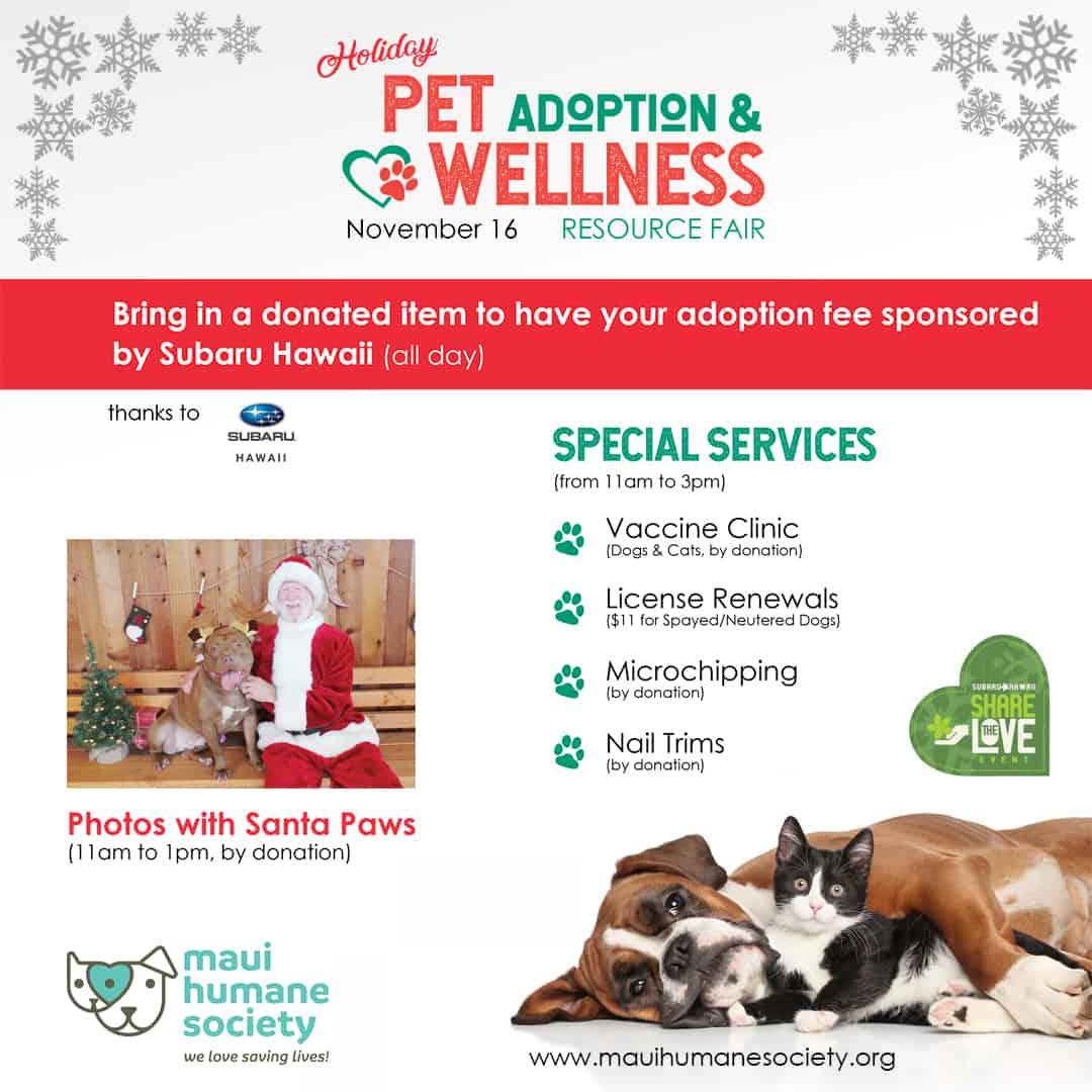 Join us on Saturday, November 16th for a Holiday Pet Adoption & Wellness Fair!