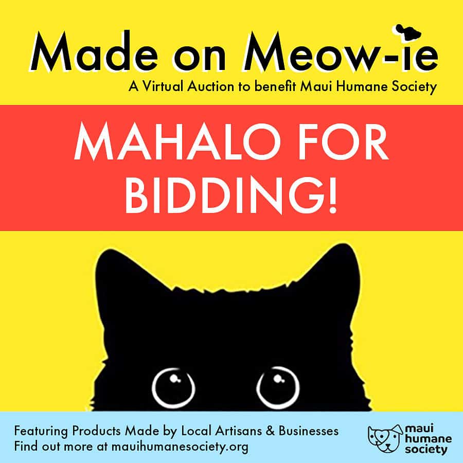 We just want to thank everyone who participated and donated to make our ‘Made on Meow-ie’ Virtual Auction a success! Maui Humane Society’s work is not possible without your support and we are deeply grateful.