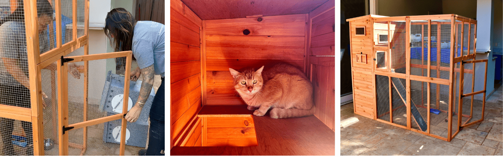 Step 4: Cats are transferred to their new outdoor adaptive home! MHS provides all food, litter, toys, treats, and support needed to make the acclimation period as comfortable for the cats as possible.