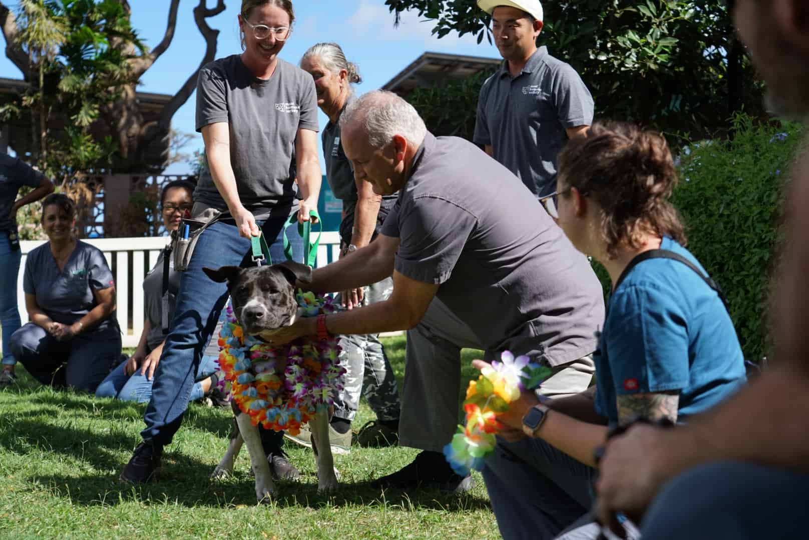 Read full article and watch the news story at Hawaii News Now: After a horrific ordeal, ‘Tommy Boy’ the poi dog is reunited with his ‘ohana
